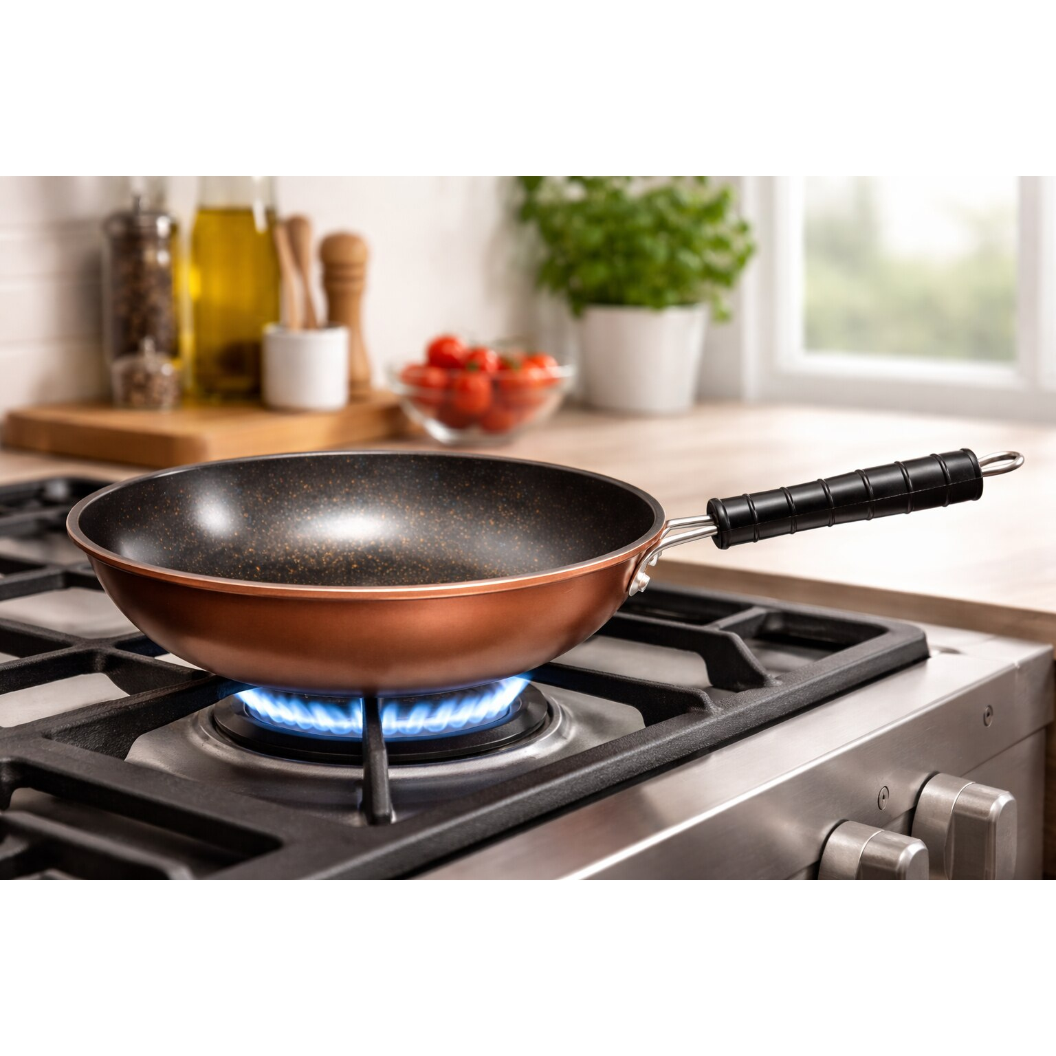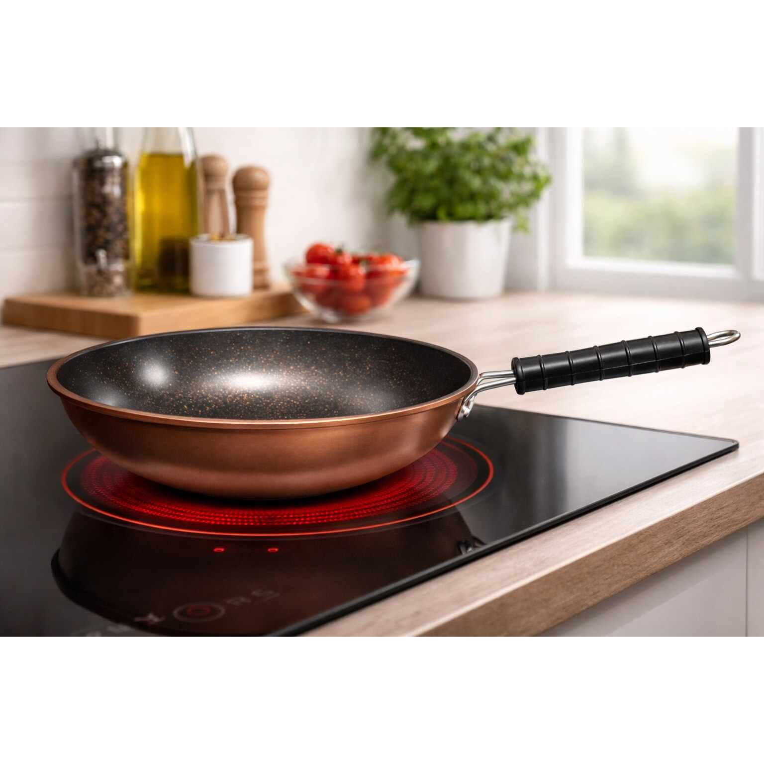 Tigaia Visuron adanca multifunctionala este alegerea ideala pentru gatitul zilnic, combinand performanta, durabilitatea si un design modern cu finisaj cupru. Construita din aliaj de aluminiu, aceasta asigura o distributie uniforma a caldurii, pentru preparate gatite corect si constant.